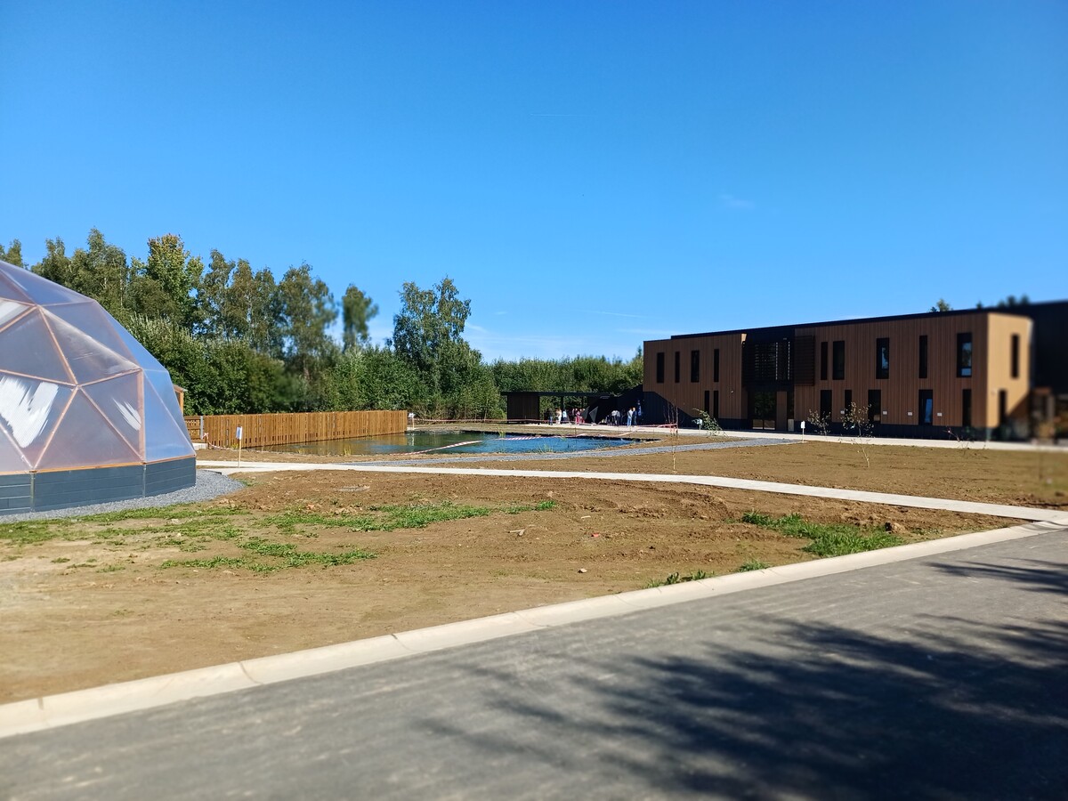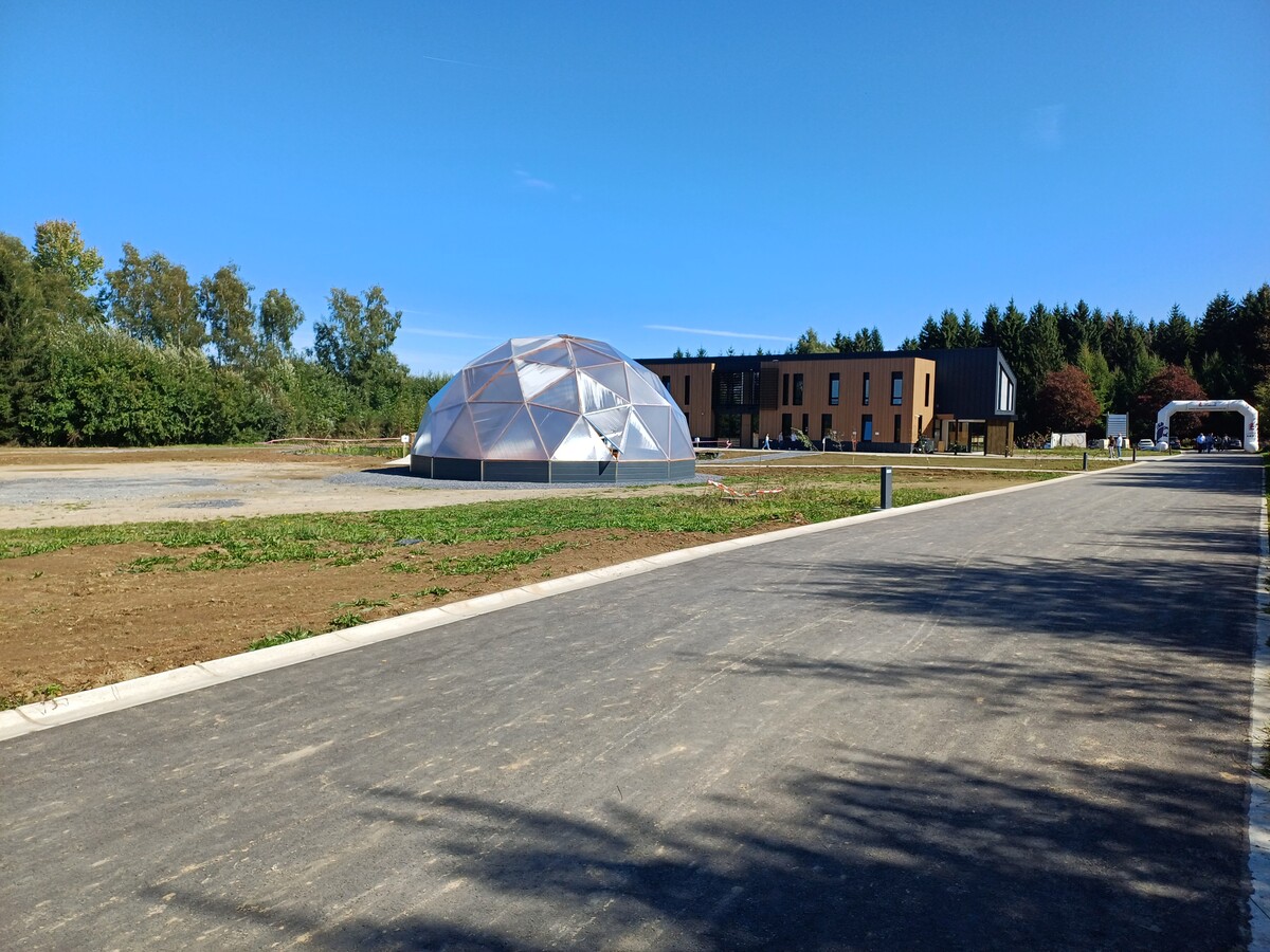 Intervention du Service général des Infrastructures scolaires subventionnées de la FW-B (Service régional du Luxembourg) : construction d'une nouvelle implantation d'enseignement spécialisée secondaire "Les Grands Pas" avec un atelier et une serre géodésique :